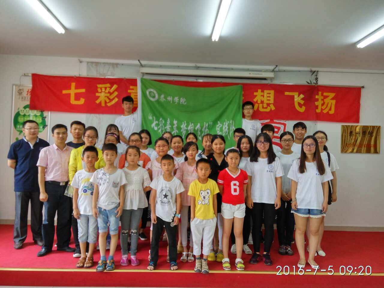 7月5日,伟德体育“七彩童年·梦想飞扬”暑期实践小分队在海陵区城西街道景光社区举行了实践活动授旗仪式。城西街道景光社区党委书记、主任胡小春等社区工作人员,公司团总支老师袁喆,实践小分队15名志愿者,景光社区20余名留守儿童、家长代表出席了启动仪式。“七彩童年·放飞梦想”暑期社会实践活动也是伟德体育“点亮童年”系列活动之一。