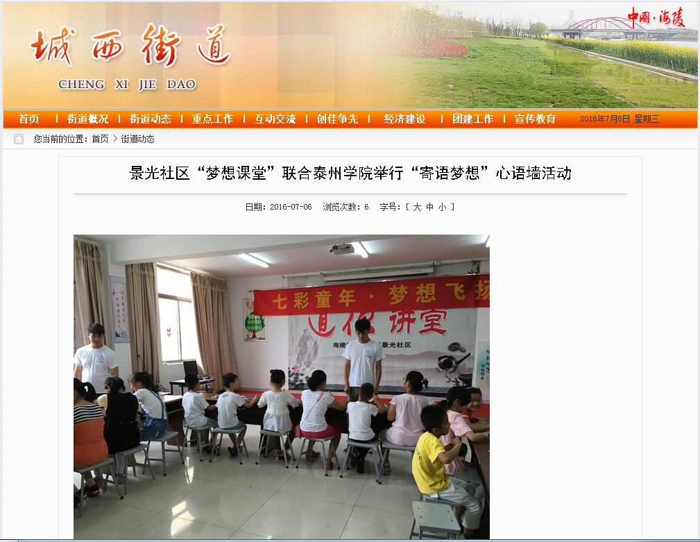 “七彩童年•梦想飞扬”暑期实践小分队走进景光社区