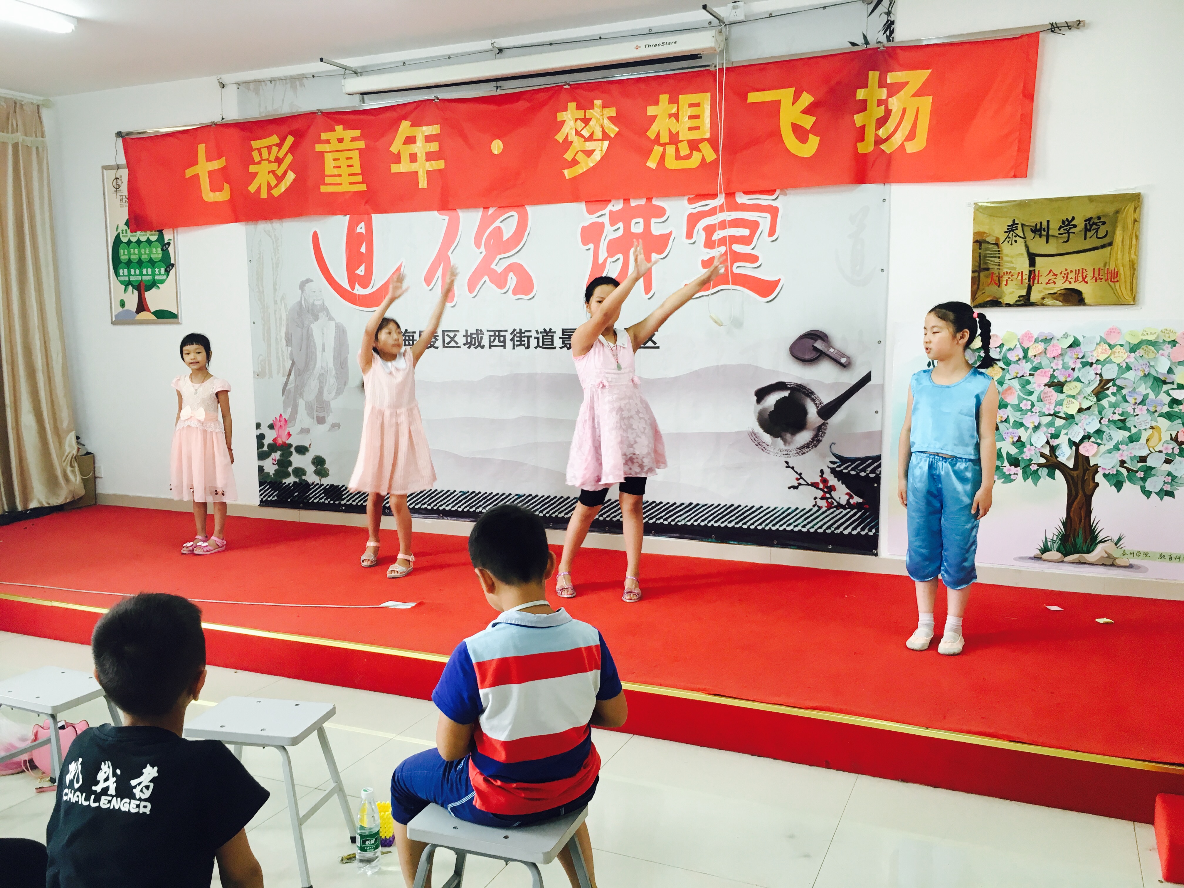 2016年7月12日,伟德体育“七彩童年  梦想飞扬”暑期社会实践小分队,在景光社区举行了大型主题演出——七彩童年,梦想飞扬。公司党委副书记、副董事长田浩,海陵区城西街道办事处主任、党工委副书记孙乾,海陵区城西街道办事处党工委委员、副主任曹领娣,海陵区城西街道景光社区党委书记、主任胡小春,校团委科创中心主任乔默之,公司党总支书记仲稳山,实践小分队指导老师袁喆参加本次活动。