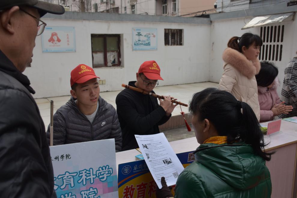 3月1日,16学前教育1班的阳光志愿者们来到了迎春社区,热情地为迎春社区的居民们运用所学知识解答了关于教育方面的问题,用科学的理论向居民提供教育指导,同时还有同学为老人吹奏竹笛并教授简单的竹笛吹奏方法。