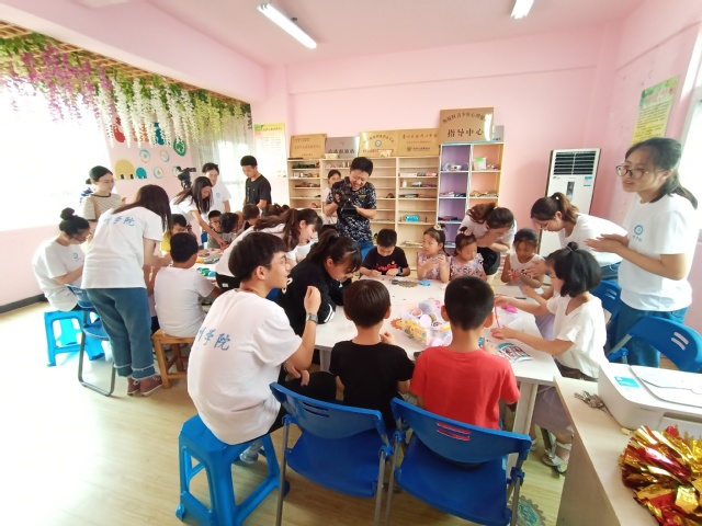 最后,太阳花暑期实践充分结合专业特色,开展红色主题手工,让孩子们充分锻炼动手能力,做出心目中的“红色”。有的孩子制作红色的五角星,并包了一层黄色的光环,他说自己心目中的党就像是红色的五角星一样,照耀着大家,带来温暖幸福的生活。还有一对双胞胎姐妹,用拼图制作了一副中国地图,她们说中国有56个民族,34个省,少一块都不是完整的中国,希望祖国能一直和平统一。