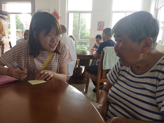 7月1日,展开了一场“破冰”之旅,走进敬老院,走近老人身边,细谈他们的生活习惯、兴趣爱好。以乡音为桥梁联通长辈和晚辈。正所谓“吴侬软语话情深”,构建起了爱的枢纽,老人们也渐渐敞开心扉,浅谈他们的过往,志愿者们都倾心聆听,贴近了心与心的交流。这些老人中有些是退伍军人,他们以此为家;有些行动不便,但他们依然对生活充满期待。为了更进一步的了解老人,志愿者们为老人一笔一笔地写下属于他们的心愿。他们最大的心愿就是子女常来陪伴。并将他们的心愿贴在了先前构筑好的心愿墙上。渐渐消除了代与代之间的鸿沟,建立起了信任关系。