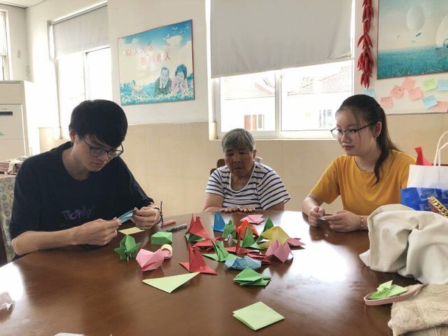 最后,“手心的纸鸢”活动更加深了老人与志愿者的感情,老人们与志愿者积极参与,氛围融洽。红色纸张折出爱心,表达出志愿者们对老人的关爱;蓝色纸张折出千纸鹤,表达出志愿者们对老人的祝福;黄色纸张折出小船,表达出老人愿志愿者们不畏艰难,扬帆起航。身为新一辈的我们,弘扬传统文化,肩负起传承中国传统手工艺的责任。