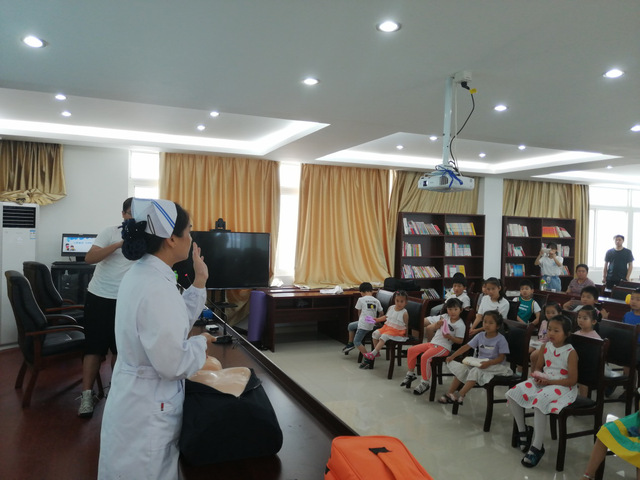 除了教导小朋友如果自救他救,我们和人民医院的窦主任进行协商,进行了急救的心脏复苏CPR的介绍,让在场的家长和社区负责人对CPR有一个深刻的理解。