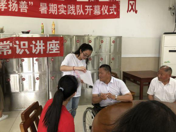 因为正值夏季,多发病也较多,他们为老人讲解了一些注意事项。暑气逼人,老年人极易受到外界不良情绪影响,保持良好的心态,随时调节情绪不仅是夏季养生的重要环节,而且对预防心脑血管疾病具有药物无法替代的作用。并讲解了日常饮食的重要性,夏季人的肠胃功能比较差,应多吃清淡食物,粗粮。不吃过凉的食物以免腹泻。老人们讲到敬老院里的食物都是合理搭配,营养丰富,符合他们的心意。