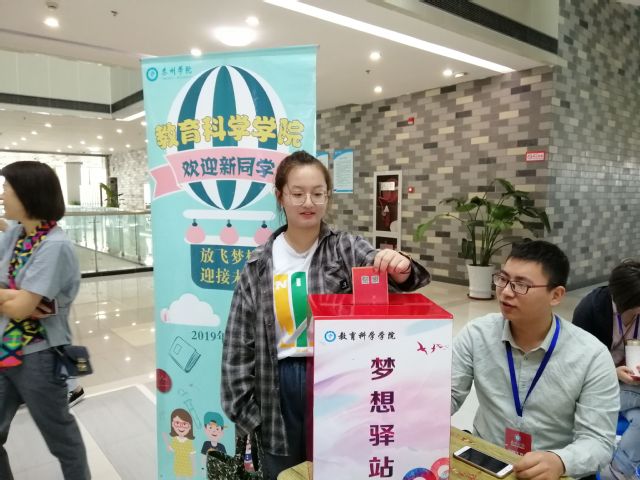 在图书馆二楼,公司设立了新生报到点。除了传统的扫码报到外,公司还设立了梦想驿站,同学们将写出对四年后的自己想说的话,再投进箱子里,让梦想永固,让时间见证逐梦的大学之旅。不少同学表示,能在中华人民共和国成立70周年前夕,走进大公司园,是自己一生的骄傲;身在新时代,要对得起祖国和人民对自己的培养,将来一定要为祖国发展立新功,让祖国永远屹立于世界民族之林,不断靠近世界舞台的中央。