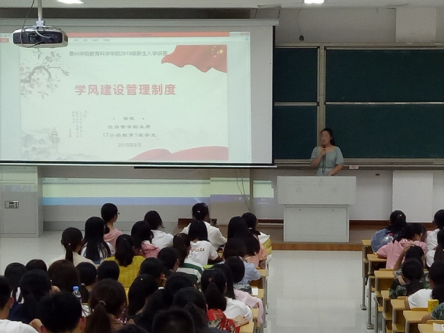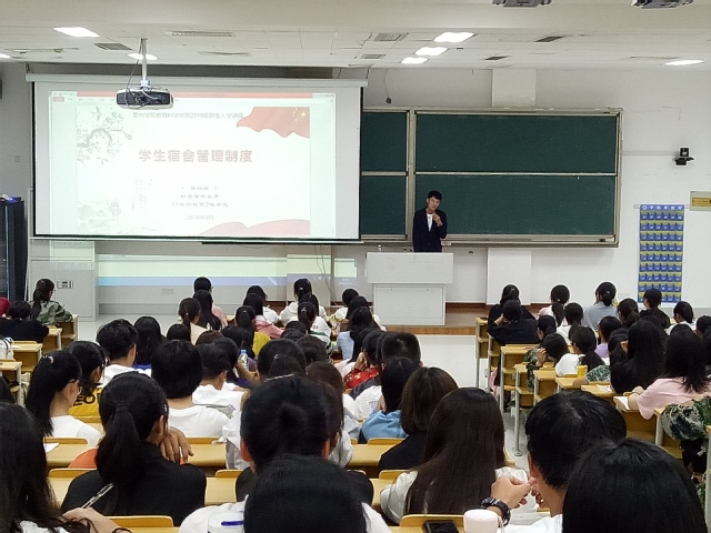 2019年9月21日晚,公司在教学楼A2108教室举行2019级新生入学教育系列讲座——宿舍管理制度和学风管理制度。诚邀伟德体育自管会主席张栩赫同学和伟德体育自管会副主席徐帆同学为新生开讲。院自管会主席团、院自管会宿管中心、院自管会学风建设中心全体成员,2019级全体员工参加讲座。