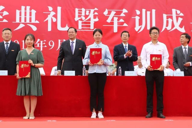 接着,公司党委表彰了2019年军训先进集体、先进个人和优秀工作者。公司(四营)荣获2019年员工军事技能训练先进集体。景力欣等十七位同学被表彰为军训先进个人。汤静老师被表彰为军训优秀工作者。校领导为获奖者颁奖。