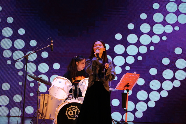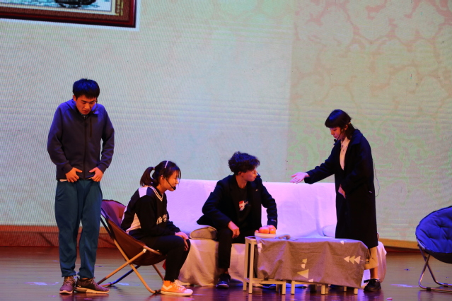 这次活动正值新中国成立七十周年,晚上还加入了“猜猜猜”的互动环节。台下的师生们积极地参与到这个猜爱国歌曲的环节中,红歌阵阵,增加了同学们对祖国的热爱,增强了民族自信心和自豪感。