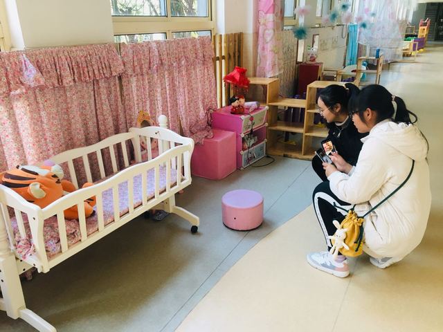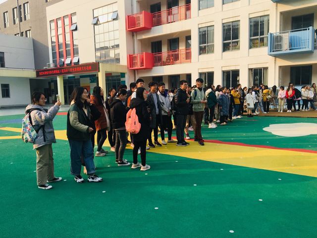 参观学习的第一站是泰州市城东中心小学附属幼儿园经东分园。首先,韩萍园长向同学们介绍了幼儿园的户外活动场地、种植区、养殖区、门厅、走廊等环境,由同学们自行选择感兴趣的部分进一步观察和讨论。随后,同学们与午起户外活动的幼儿进行互动、玩抛接球等游戏。同学们纷纷表示,幼儿园环境温馨而美好,幼儿活泼可爱,很希望有机会到幼儿园见习。