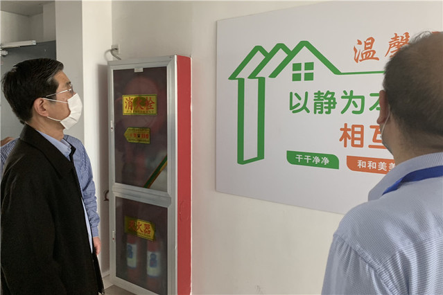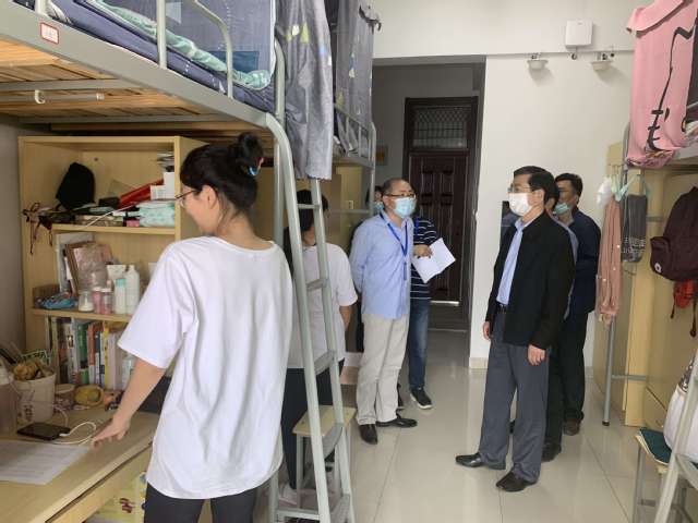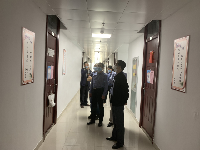 邓友祥一行来到公司员工所在的宿舍区,观看了教科院“温馨之家”、“教育名人名言走廊”和“学子防疫三字经”等宿舍文化建设成果。他与公司领导老师进行交流,对公司当下疫情防控的管理、疫情期间返校员工的关爱行动以及文明宿舍创建等做法表示充分肯定。