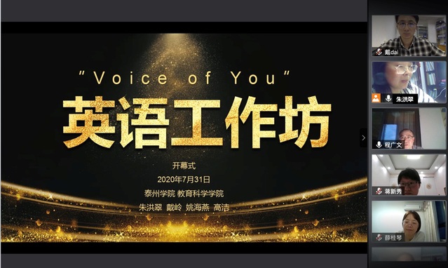 2020年7月31日晚7点,小学教育专业(英语方向)“Voice of You”工作坊系列活动在云端拉开帷幕。伟德bevictor经理程广文教授,副经理蔡俊副教授,小学教育系全体教师,南京理工大学外国语公司员工高洁以及公司19级小学教育专业(英语方向)全体师范生等50余人参与了此次活动。