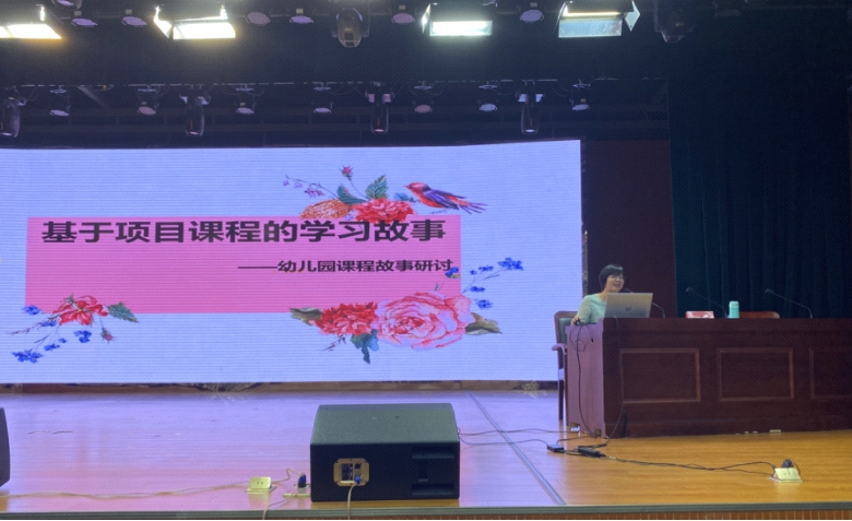 活动中,朱巧玲老师作题为基于项目课程的学习故事的主题报告。在报告中,朱老师基于问题与案例,结合六位幼儿园老师们分享的课程故事,围绕项目课程的意义、基本思路和展开阶段等,对相关的理论与实践进行了详细的介绍。最后,她针对如何撰写课程故事作了精彩的汇报。现场气氛热烈,反响较好。
