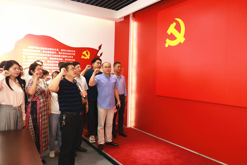 “我志愿加入中国共产党,拥护党的纲领,遵守党的章程,履行党员义务,执行党的决定,严守党的纪律,保守党的秘密,对党忠诚,积极工作,为共产主义奋斗终身,随时准备为党和人民牺牲一切,永不叛党。”面对鲜红的党旗,党员同志们庄严地举起右手,握拳宣誓,重温入党誓词,永葆入党初心。