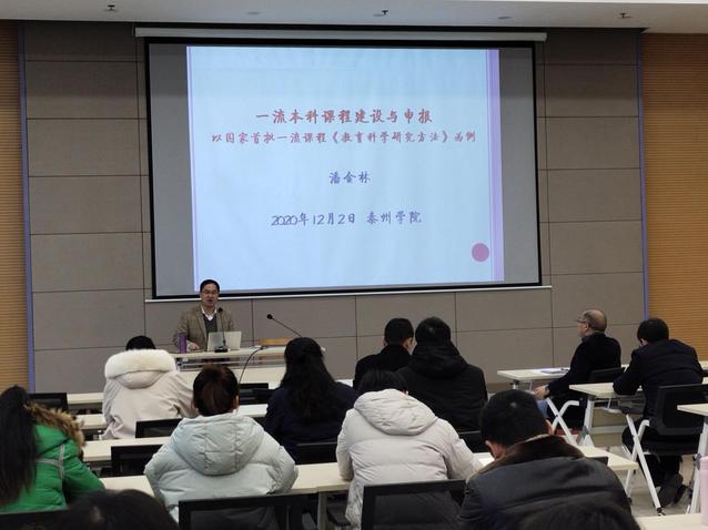 2020年12月2日,南京大学高等教育学博士、常州工公司潘金林教授应公司邀请,下午2点半在图书馆1703“胡瑗讲堂”报告厅做《一流本科课程建设与申报——以国家首批一流课程<教育科学研究方法>为例》的学术主题报告。来自教科院全体教师、公司一流课程建设负责人代表参加本次讲座。