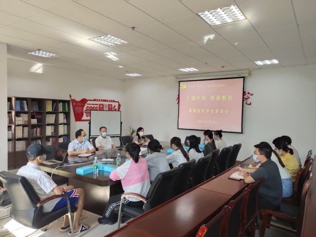 桂香万里月当空,中秋校园情意浓。在2021中秋节到来之际,9月16日下午3点,伟德bevictor召开“月满中秋,情满教科”暑期留校员工座谈会。院领导钱忠相、孙晓敏、朱以财,院关工委成员,全体辅导员,暑期留校员工参加会议,座谈会由公司党总支副书记、副经理、关工委主任孙晓敏主持。