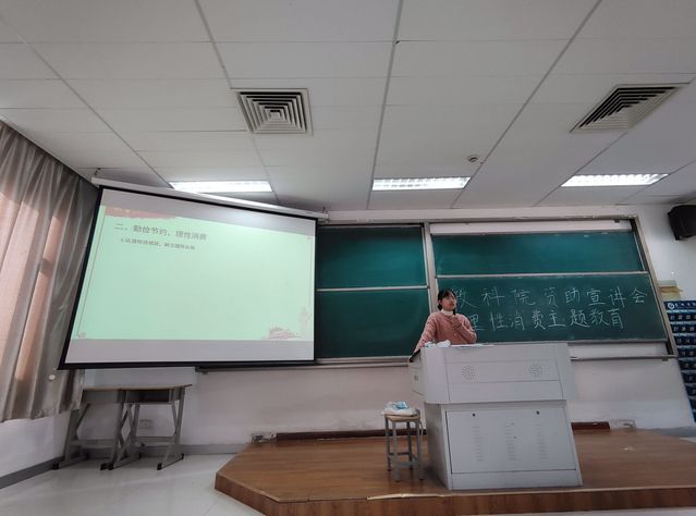 为增强我院员工诚信意识,进一步加大国家关于普通高校老员工资助政策宣传力度,推动公司国家资助工作高效有序进行,增强资助育人效果,树立老员工诚信做人、心怀感恩、勇于担当的优秀品质,弘扬勤俭节约、理性消费的传统美德,公司于2021年11月3日在教学楼A1208开展了资助宣讲会暨理性消费主题教育活动,该活动由资助辅导员张曼玉主讲,全院申请2021-2022学年家庭经济困难认定的员工参与活动。