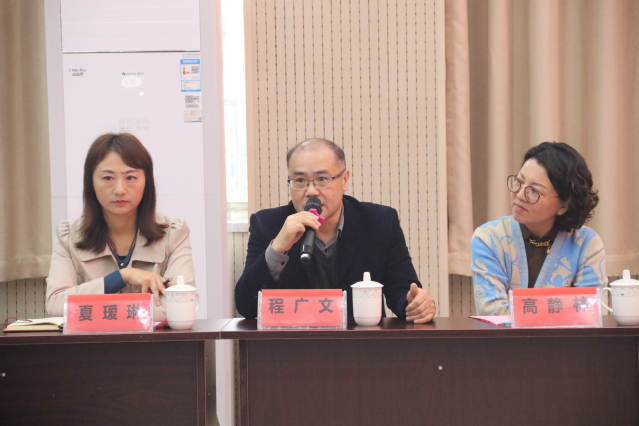 随后,大浦中心小学教导处主任冯金林汇报了该校“美好课程”建设的中期情况,分别从“美好课程”体系的基本思路、内容建设、实施与评价等方面进行了阐述。刘华教授回应了教师提出的问题并对教师专业发展路径进行了解读,提出了“理论+实践+反思=教师可持续性发展”的观点,她希望以行动研究为主推动校本团队培训,助力教师发展,通过合作开展科研活动,思考在“双减”背景下如何提高教学效益,共同探究学科之道和员工发展之道。程广文教授基于数学学科视角,并结合自身经历,从建立共同体等角度解读了教师专业成长之路。刘冬冬、卢凤等老师也回应了现场教师提出的相关问题。