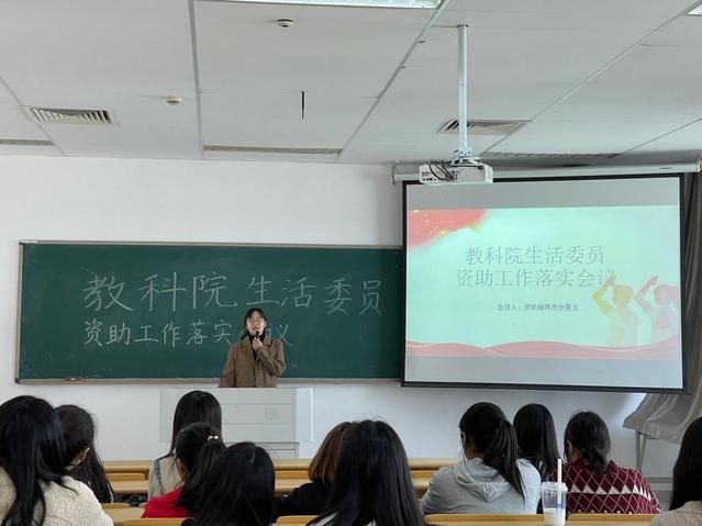 为深入落实国家关于普通高校老员工资助政策,让各班级生活委员更好地传达相关资助政策,增强作为班委的责任意识,助力每一位同学的大学梦,我院于2021年11月4日在教学楼A1404开展了教科院生活委员资助工作落实会议,资助辅导员张曼玉老师主讲,各班生活委员及院员工会生活部参加了本次会议。