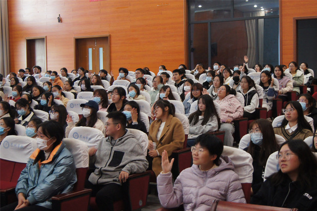 李如齐在讲座的开始就以几幅有趣的心理图片吸引了全体同学的注意与探讨,通过不同同学对同一幅图的不同发现,加深同学们对适应的认识。进而,促进同学们思考“谁让我们不适应”的问题。接着,李如齐通过鲜活生动的案例,分析新生刚入学感到不适应的可能因素:恋旧心理、新旧环境的差异。并根据自己多年的从教经验,用以往员工的真实案例给出有效的解决办法,如培养新环境感情、转移注意力、改变自己等。在讲座的最后,李教授还亲自示范自我安抚的方法——蝴蝶拍,全体老师和同学起立跟着李教授的节奏,感受蝴蝶拍方法带给自己的放松与宁静。
