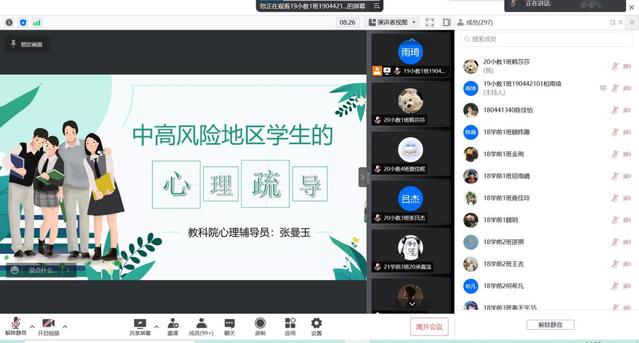 近期,我省出现了新一轮本土新冠疫情,给多地延迟返校员工的学习和生活造成了一定的影响,3月2日,心理辅导员张曼玉开在线开展了“中高风险地区员工心理疏导会”,300多名延迟返校员工参加了疏导会。