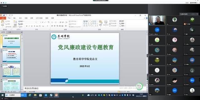 为深入贯彻落实全面从严治党,进一步推进党风廉政建设,增强党员干部廉洁自律意识5月12日下午公司党总支线上开展了党风廉政建设专题教育活动,全体教师党员参加。