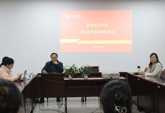 鼓劲会上,孙晓敏了解了考研学子需求,缓解紧张气氛,并请同学们放心备考,公司会安排好一切后勤保障工作。朱以财分析了当下考研形式,并以自身的考研经历为例,与同学们分享考研冲刺阶段如何调整状态、科学制定规划的方法。