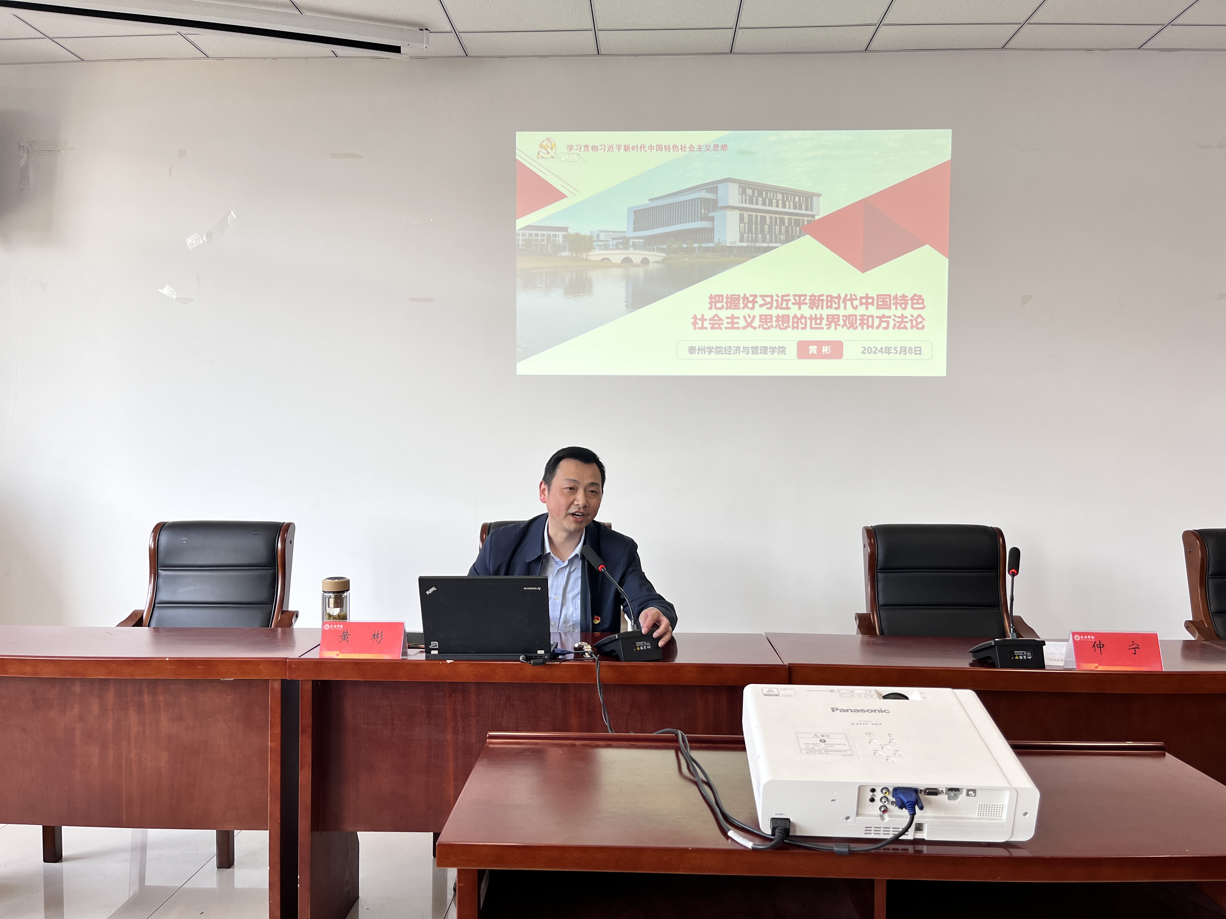 为切实提高公司教职工政治理论水平和政治素养,5月8日下午,公司在G3502会议室组织开展教职工政治理论学习,经济管理公司党总支书记黄彬以《把握好习近平新时代中国特色社会主义思想的世界观和方法论》为题作讲座。公司党总支书记仲宁主持会议。