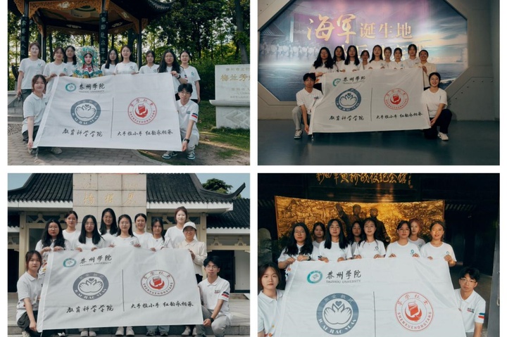 活动前,团队依托泰州市红色文化协同研究中心,充分梳理泰州红色血脉,整理泰州红色资源,建设“人、事、物、魂”红色文化教育资源库。活动中,团队赴中国人民解放军海军诞生地纪念馆、新四军黄桥战役纪念馆、杨根思烈士陵园、梅兰芳纪念馆、泰州市烈士陵园等红色教育基地开展现场研学活动。通过一幅幅珍贵的图片、一件件真实的史料,成员们沉浸式追寻红色足迹,倾听历史回响,体悟红色文化,传承红色精神。