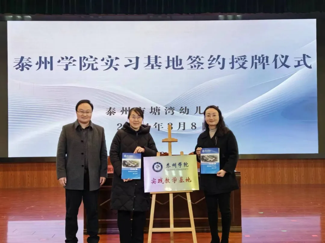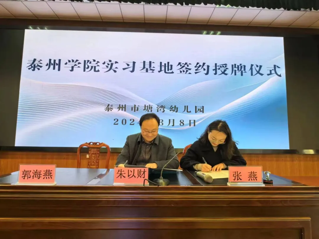 为加强学前教育专业建设,进一步优化教育资源,加深校、园合作,落实学前教育专业人才培养目标,强化学前教育专业员工的实践能力,创新人才培养模式,2024年3月8日上午,公司在泰州市塘湾幼儿园举行“学前教育实践基地”签约授牌活动。泰州市塘湾幼儿园园长张燕,公司副经理朱以财,学前教育系主任郭海燕等参加活动。