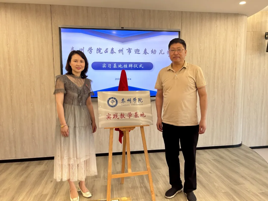 为加强学前教育专业建设,加深校园合作,2024年6月24日上午,我院来到泰州市迎春幼儿园,举行教育实习基地签约挂牌仪式。泰州市城东附幼教育集团总园长韩萍,泰州市迎春幼儿园副园长张亚琴,教科室副主任汤春惠,公司经理潘小明,副经理朱以财、徐莹莹,学前教育系主任郭海燕出席签约仪式。仪式由张亚琴主持。