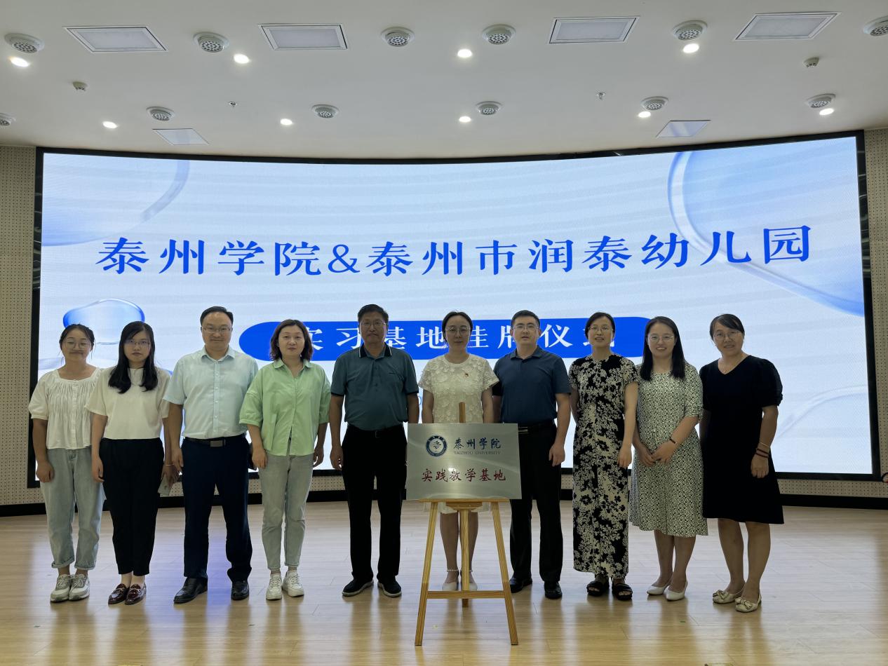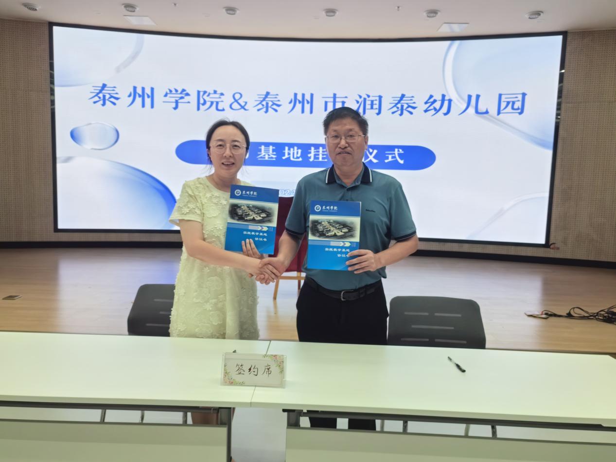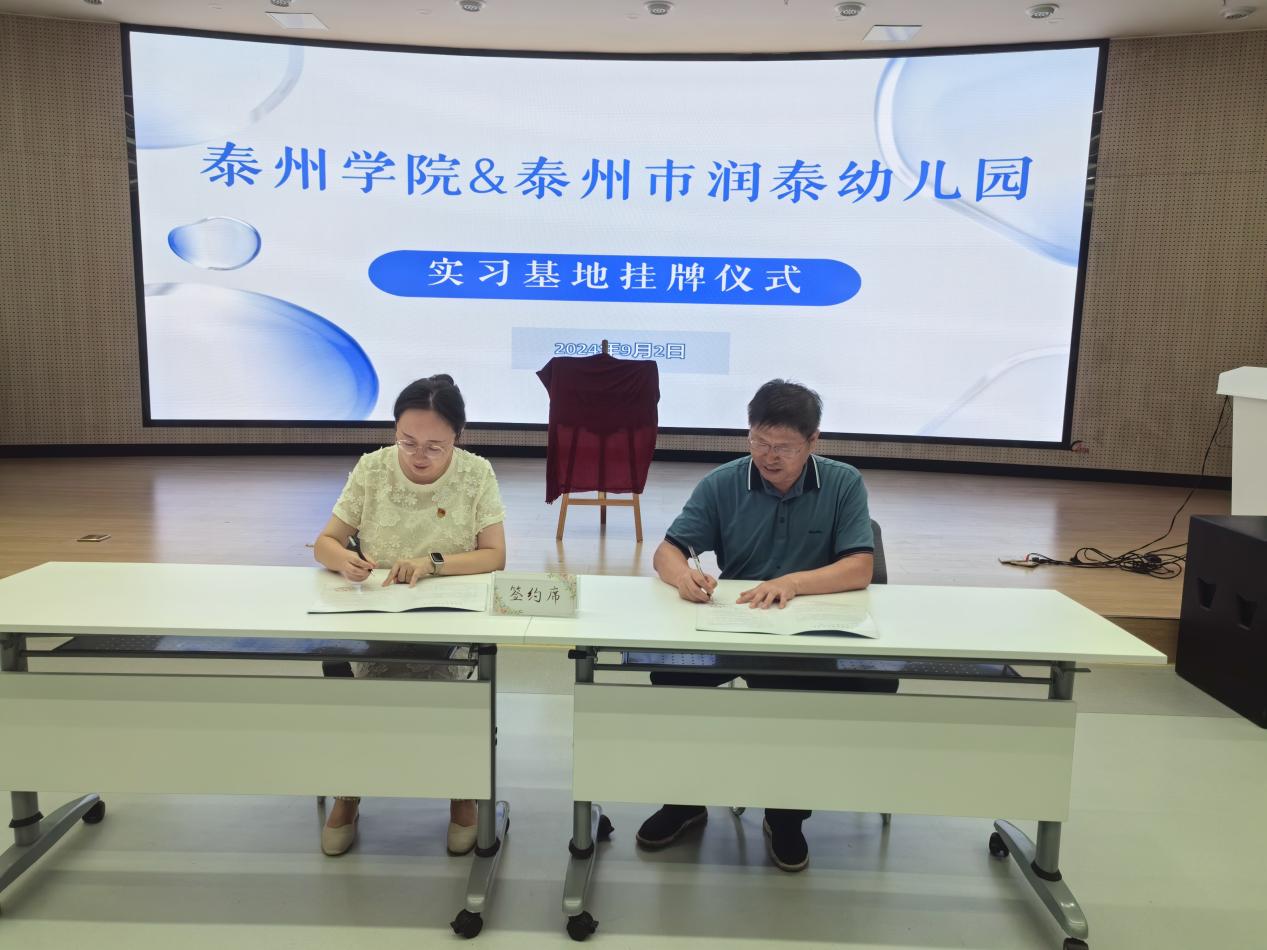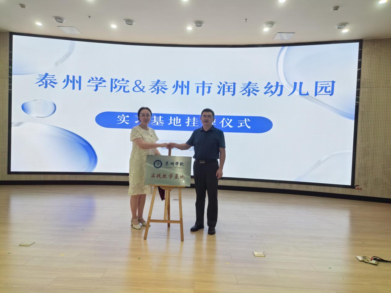 为促进资源共享,提生员工的实习质量,2024年9月2日下午,公司来到泰州市润泰幼儿园,举行教育实践基地签约挂牌仪式。泰州市大浦中心小学附属幼儿园教育集团党支部书记、园长马海燕,泰州市润泰幼儿园副园长季敏,教研室主任陈静,后勤主任包圆圆,公司党总支书记仲宁,经理潘小明,党总支副书记、副经理孙晓敏,副经理朱以财、徐莹莹,学前教育系主任郭海燕等出席签约仪式。仪式由季敏主持。
