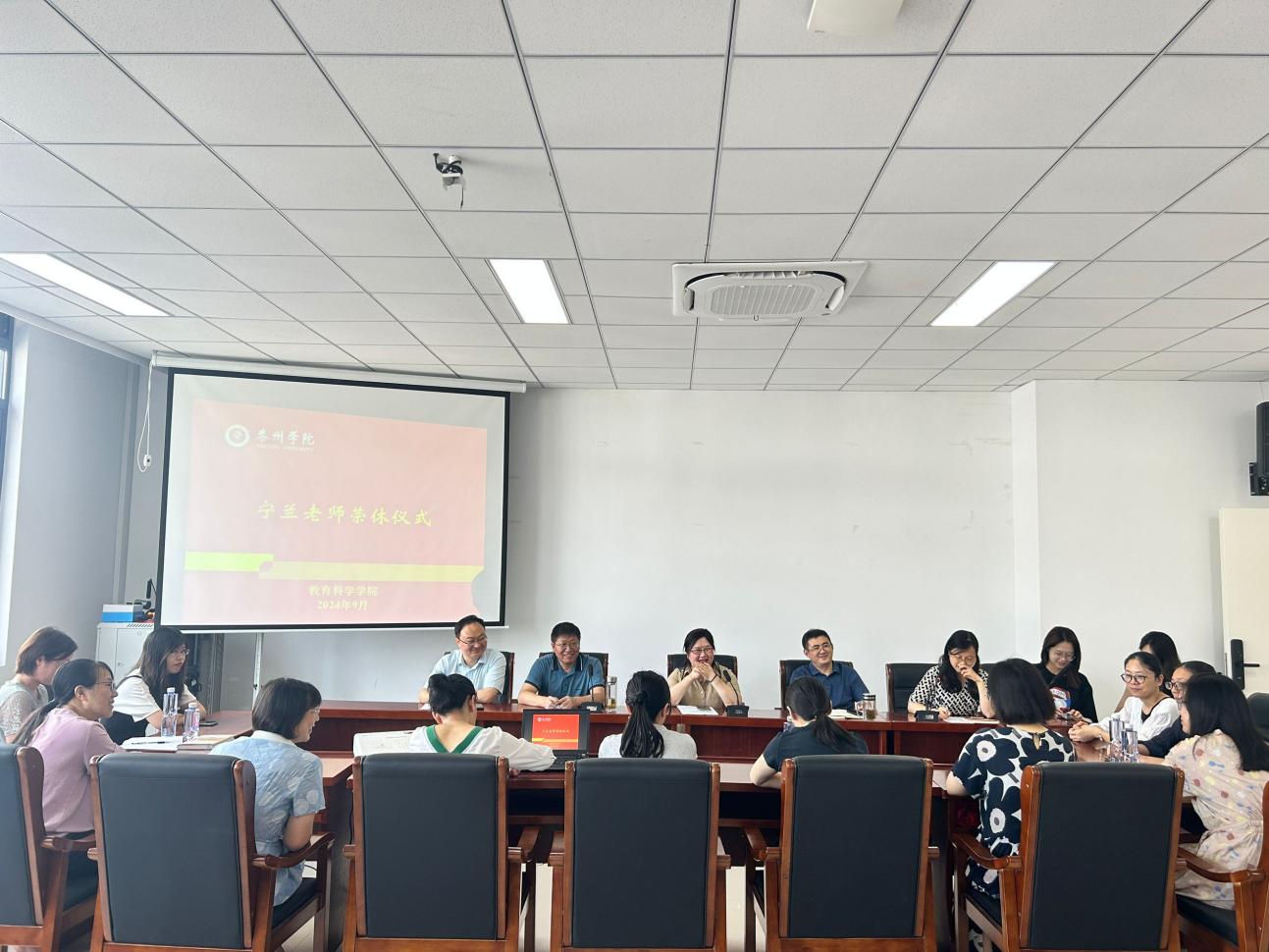 倾心育桃李,躬行铸师魂。恰逢第40个教师节到来之际,为激励青年教师传承前辈爱岗敬业的教育情怀,弘扬尊师重教的优良风尚。9月6日上午,公司在西教学楼G3502会议室为宁兰老师举办荣休仪式,公司党总支书记仲宁,经理潘小明,党总支副书记、副经理孙晓敏,副经理朱以财以及部分师生代表一同见证荣休仪式。