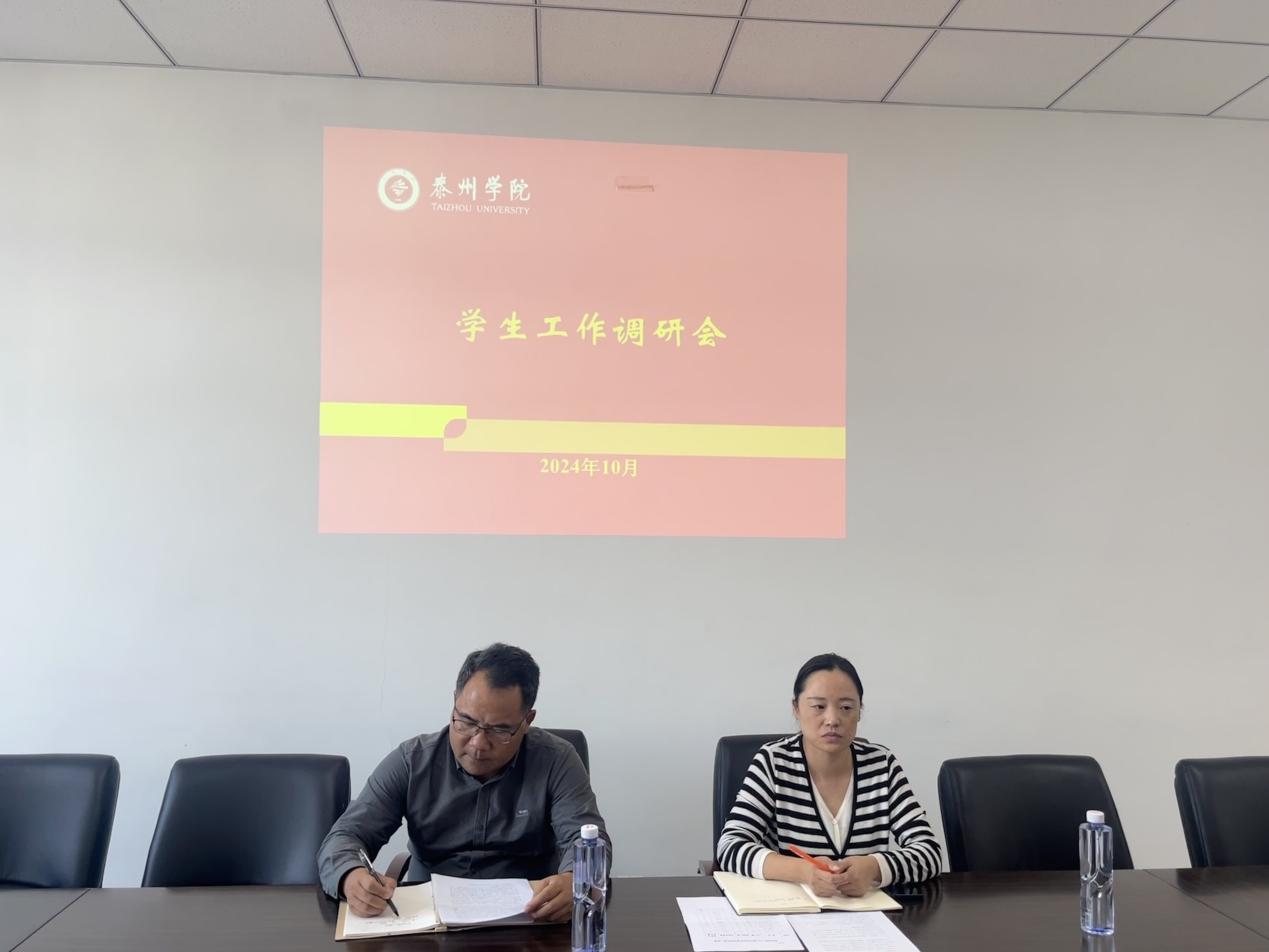 2024年10月11员工工作处陈茂国处长、周颖副处长一行莅临伟德bevictor开展工作调研,公司党总支书记仲宁,党总支副书记、副经理孙晓敏,副经理朱以财及全体辅导员参加本次员工工调研会。