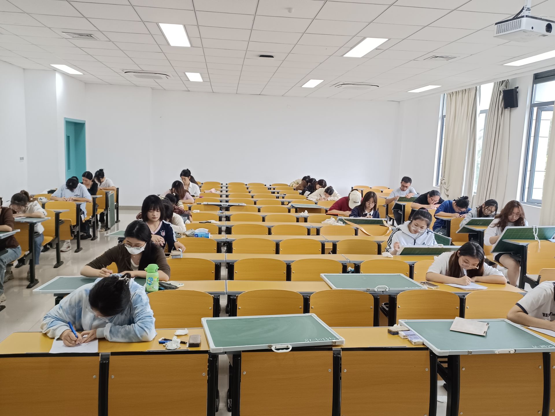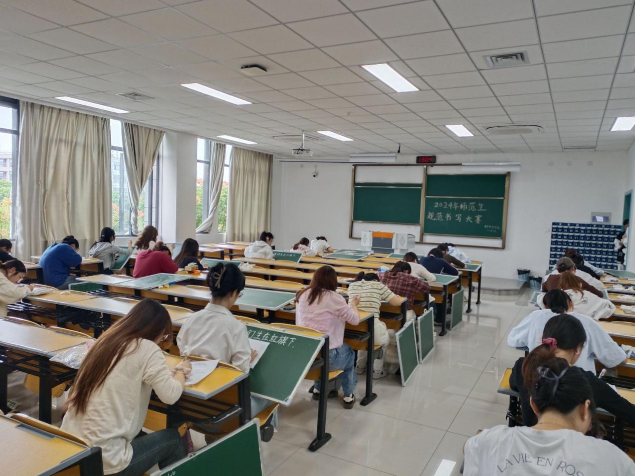 比赛分为硬笔字书写和粉笔字书写两项,书写内容充分表达当代师范生对祖国的热爱,对中华优秀传统文化的传承。比赛期间,选手们全神贯注于笔下的创作,一撇一捺间都彰显着扎实的书写功底。选手们的钢笔字一笔一划都力求精准,字形端庄秀丽,展现着楷书的严谨与规范。选手们的粉笔字在黑板上挥洒自如,排版整洁美观,字迹清晰流畅。比赛结束后,评委们将从学前教育专业和小学教育专业的选手中,分专业各评选出15位优秀选手,推荐参加校级比赛。