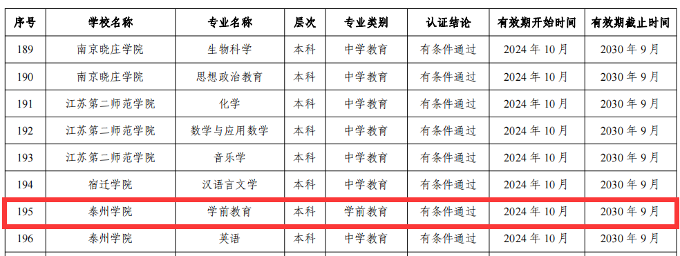 近日,教育部办公厅公布《2024年通过普通高等公司师范类专业认证及认证中期审核专业名单(教师厅函〔202420号)》,公司学前教育专业有条件通过师范类第二级专业认证,认证结论有效期六年(202410月至20309月)。