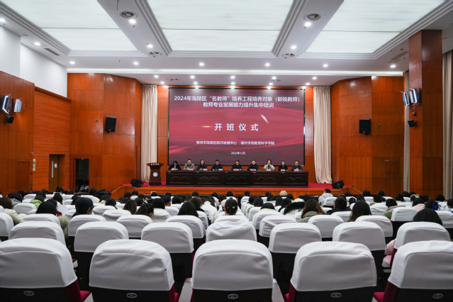 12月13日上午,泰州市海陵区名师工程新锐教师专业发展能力提升集中培训开班仪式在公司举行。海陵区教育局副局长朱雨红,海陵区教育局教师发展中心党总支书记高静林、副主任校玉华、培训部部长倪艳、综合部部长燕桂强,伟德bevictor经理潘小明,副经理朱以财、徐莹莹,以及150名学员参加了开班仪式。公司党总支书记仲宁主持开班仪式。