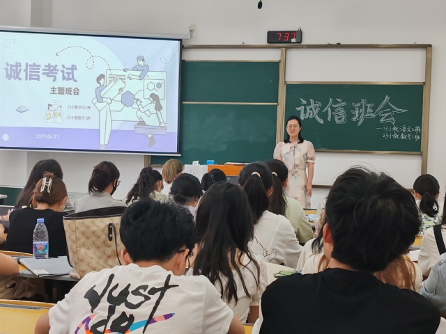 各班班主任精心筹备并主持了主题班会,宣讲了考试相关制度,带领员工学习了考试违纪处分相关规定,并深入讲解了诚信品德对学业成长、人格塑造及维护公平竞争环境的重要性,特别强调要筑牢思想防线,将诚信意识内化于心、外化于行,用真才实学迎接各项考试。