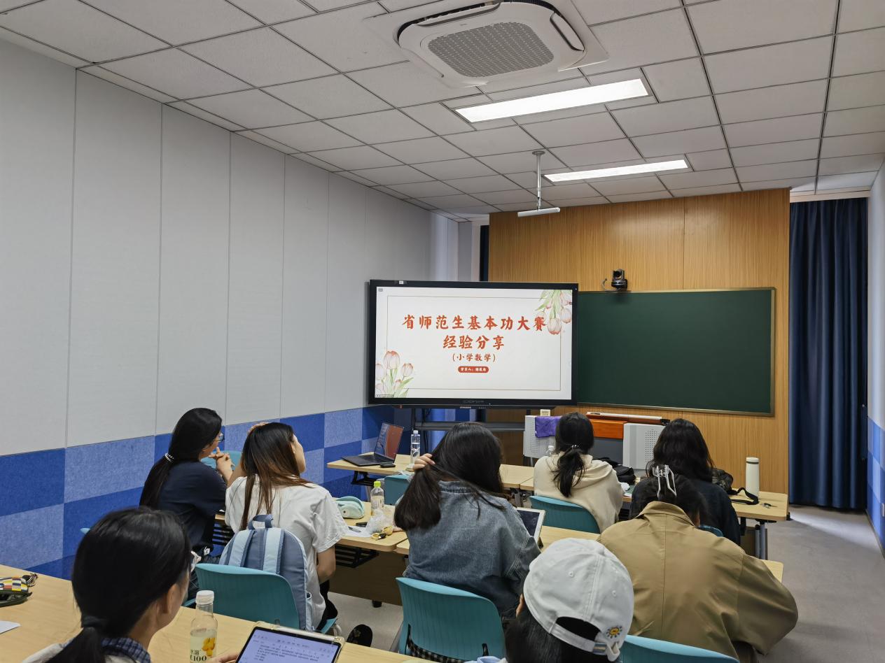 为帮助参赛选手精准掌握江苏省师范生基本功大赛备赛要点,9月27日上午,公司在博雅楼G3205举行省师范生教学基本功大赛获奖选手经验分享会。副经理朱以财参加分享会。沈璐、谢筱萌、曹紫芸、吴晏颐、蒋雨涵、李佳欣、施文婷、申小丫、仲桂瑶等9位往届获奖选手,2022级全体参赛选手,以及2023、2024、2025级小学教育专业员工代表,在现场和云端参加活动,共汲备赛经验。