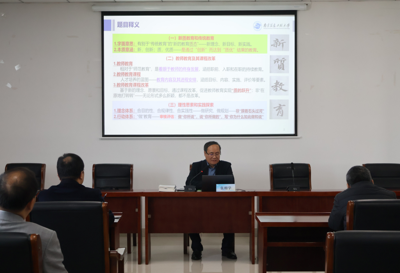 10月22日下午,南京信息工程大学张相学教授来我院做了主题为“新质教育视域下教师教育课程改革的理性思索和实践探索”专题讲座,讲座由经理潘小明主持。