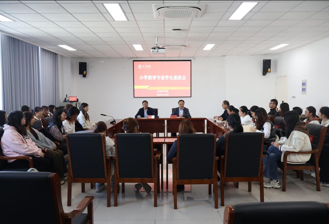 为深化公司产品改革,落实“员工中心、产出导向、持续改进”的质量理念,2025年11月5日,小学教育系在博雅楼G3502会议室召开员工座谈会。经理、小学教育专业负责人潘小明,副经理、小学教育系主任朱以财,系副主任李未来、王丽、凌葆琦等参与座谈会,与各年级员工代表进行深入交流。