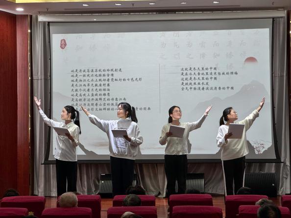 活动伊始,主持人带领大家溯源立冬的上古渊源与历代习俗,了解节气背后的文化内涵。随后在诗歌朗诵环节中,同学们以真挚饱满的情感、抑扬顿挫的语调娓娓道来,字里行间流淌着家国情怀与冬日雅韵。接着,志愿者与老人们一起制作艾草香囊,大家一同将艾草填入彩布、穿针引线,体验传统手工的乐趣。活动尾声,志愿者们将精心制作的贺卡送到老人手中,手写的祝福、暖心的解读,让他们脸上都洋溢着幸福的笑容。