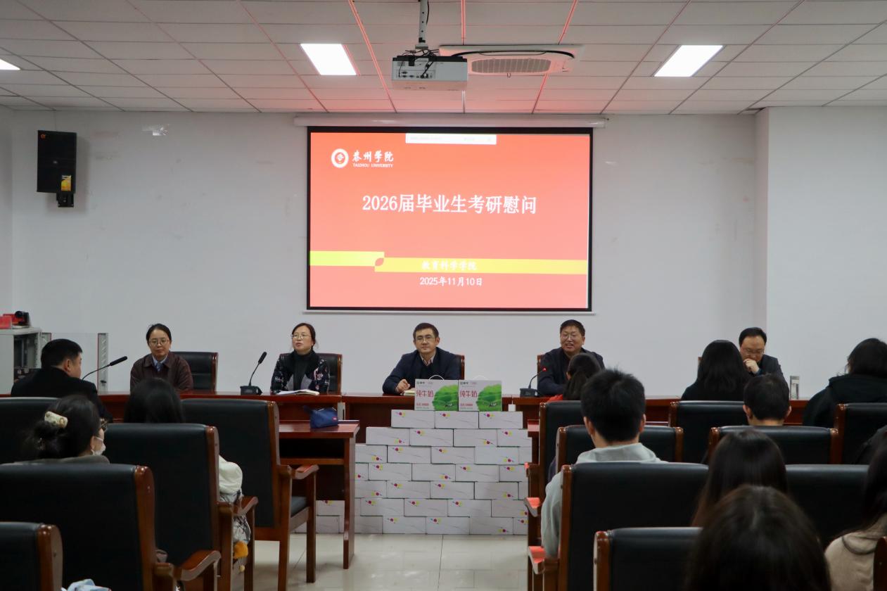 为提振考研学子士气,坚定备考信心,11月10日,公司举办了2026届毕业生考研慰问活动。党总支书记仲宁,经理潘小明,党总支副书记、副经理孙晓敏,副经理朱以财、徐莹莹出席会议,各专业系主任、毕业班班主任、辅导员以及70余名考研员工参加会议,会议由孙晓敏主持。