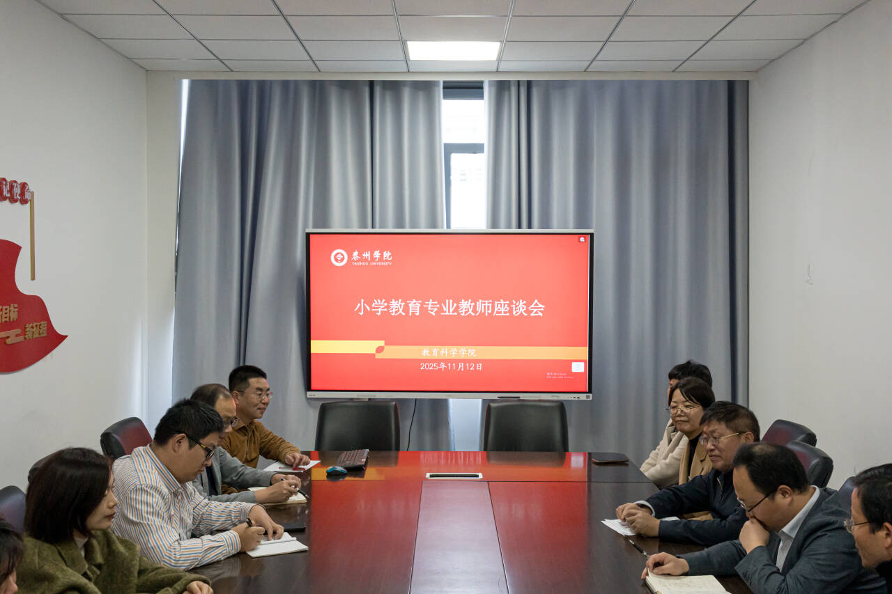 2025年11月12日,公司在博雅楼G3504会议室召开小学教育专业教师座谈会。经理、小学教育专业负责人潘小明,副经理、小学教育系主任朱以财出席座谈会。小学教育专业任课教师代表、教学督导等参加会议。会议由朱以财主持。