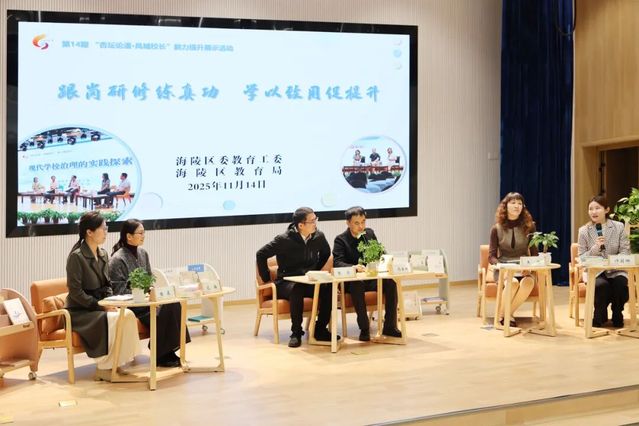 在专题沙龙环节,海陵公司副董事长沈梅、海军中学副董事长张华、实验小学副董事长王璐、城东小学副董事长许莉娜、大浦小学副董事长冯金林、南师大泰州实验幼儿园副园长陆辰等6位校(园)长围绕“真实见闻+精彩亮点”话见闻、谈收获,聚焦实践痛点共探育人良方。他们既分享了跟岗见闻的精彩亮点,又直面办学痛点给出了可落地的解决方案,充分展现了海陵教育管理者的思考力与行动力。沙龙活动期间,台上台下人员相互提问、当场解答,现场气氛活跃、掌声热烈,生动诠释了“学以致用”的研修初心。
