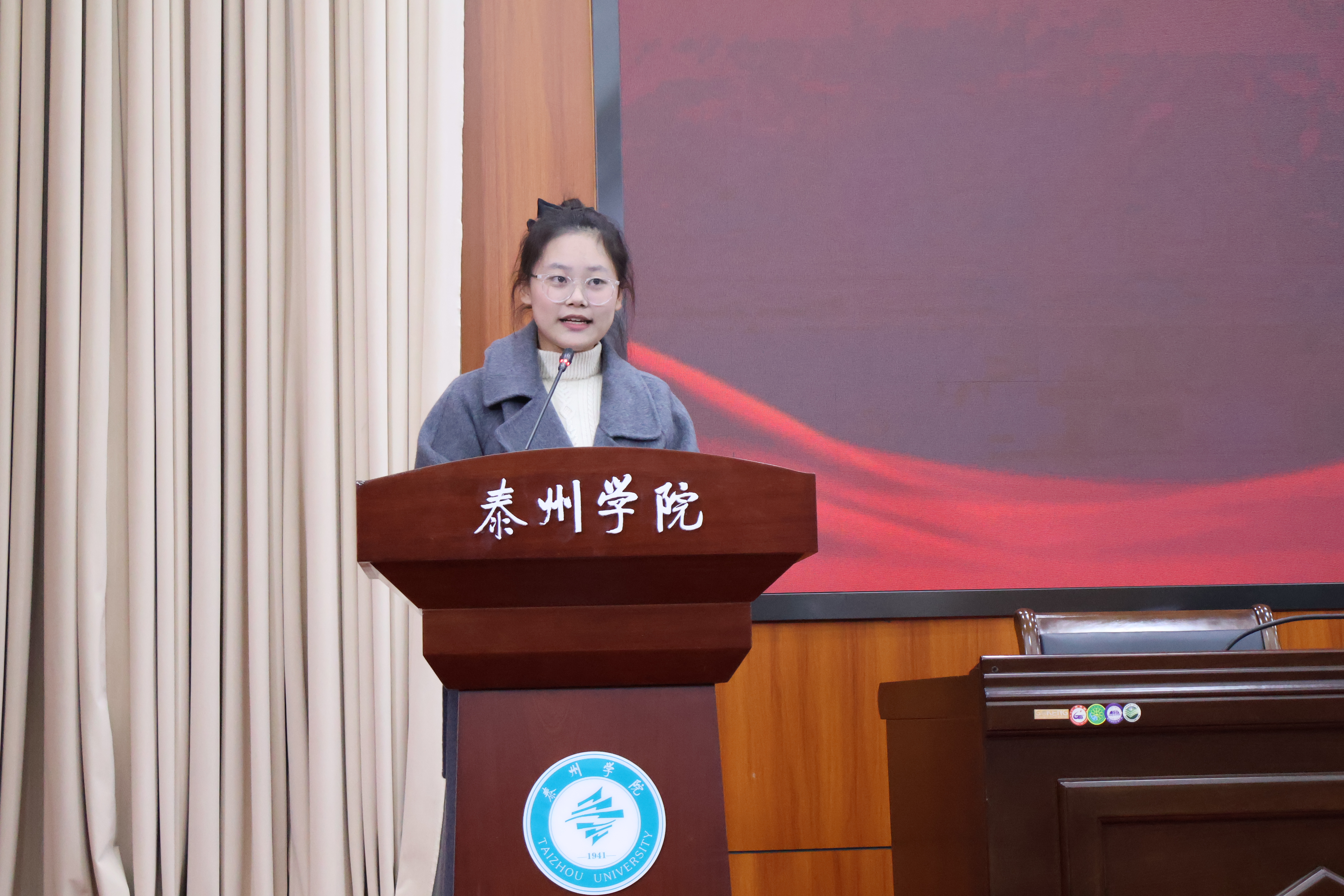 25学前教育班李润作为学员代表发言。她表达了对党组织的向往与感恩,承诺将以饱满热情投入学习,做到勤学善思、知行合一。